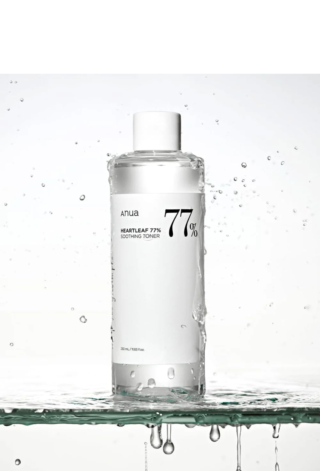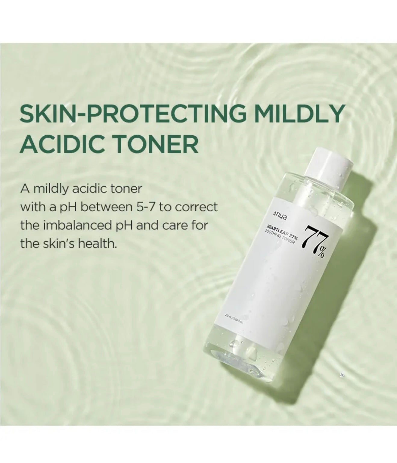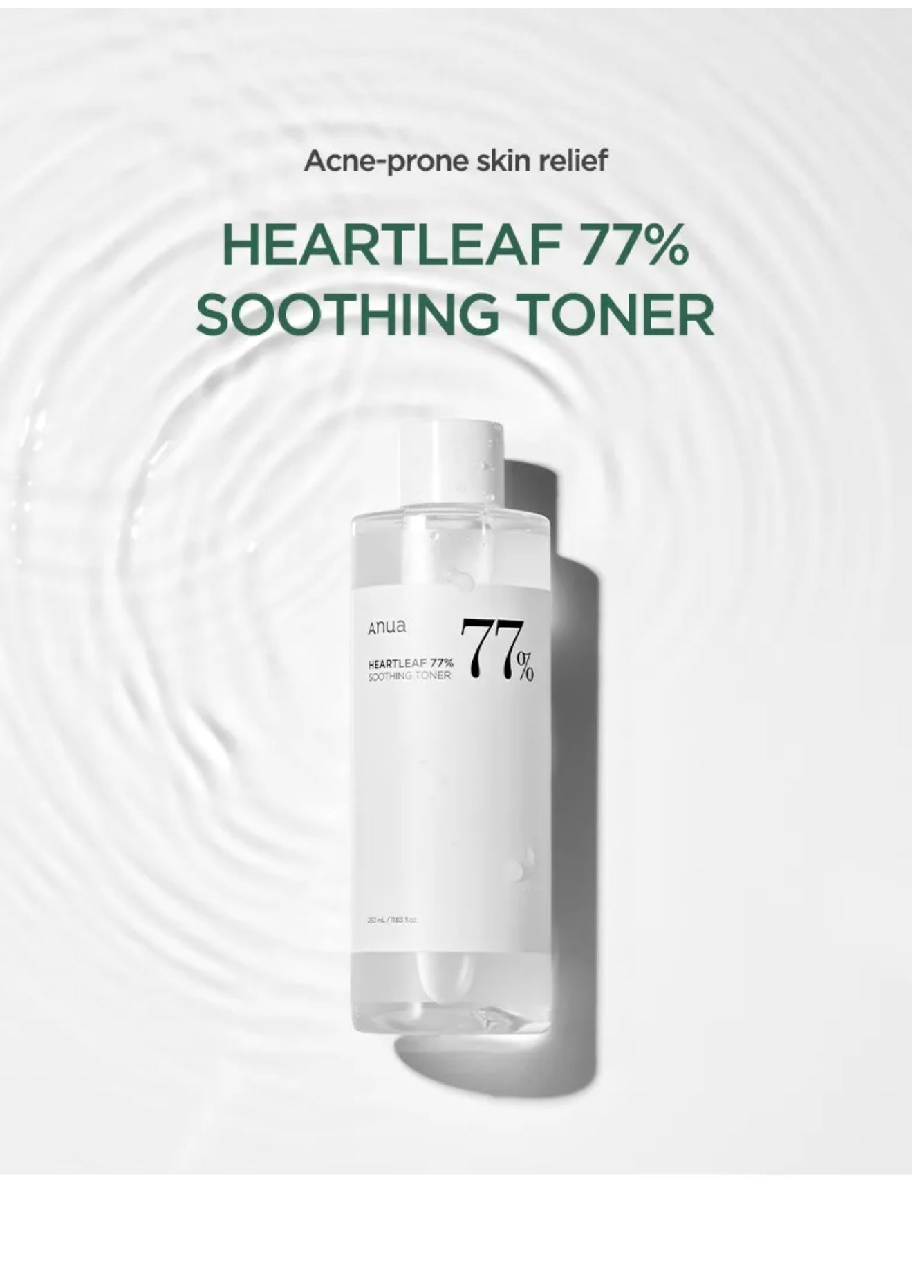 Revitalize your skin with the Anua Heartleaf 77% Soothing Toner, a best-selling toner designed to calm irritation and moisturize your complexion. Formulated with 77% Heartleaf Extract, this toner helps to soothe, tone, and hydrate the skin, making it perfect for all skin types, including acne-prone skin.