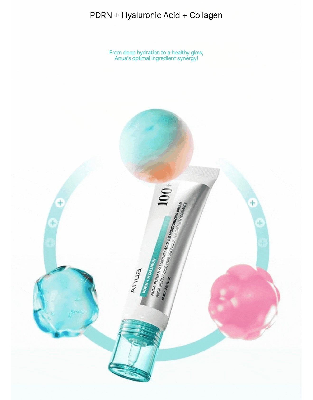 - A hydrating cream infused with PDRN and 10 types of Hyaluronic Acids to revitalize skin by conditioning it, boosting radiance, and replenishing essential moisture.