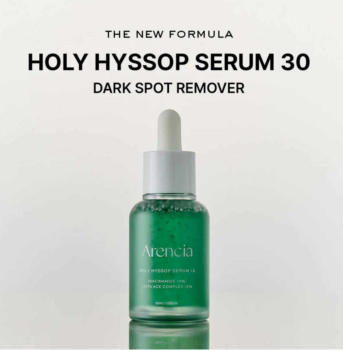 The Arencia Holy Hyssop Serum 12 is a brightening serum that revitalizes dull skin and helps reduce the appearance of hyperpigmentation and dark spots. Formulated with green hyssop extract from France, rich in Vitamins A, C, and E, this serum offers effective pore care and improves skin texture. It contains 12% exclusive Vita ACE Complex ingredients, boosting skin brightness and glow. The lightweight yet deeply hydrating texture is easily absorbed by the skin, making it suitable for all skin types, including sensitive skin.