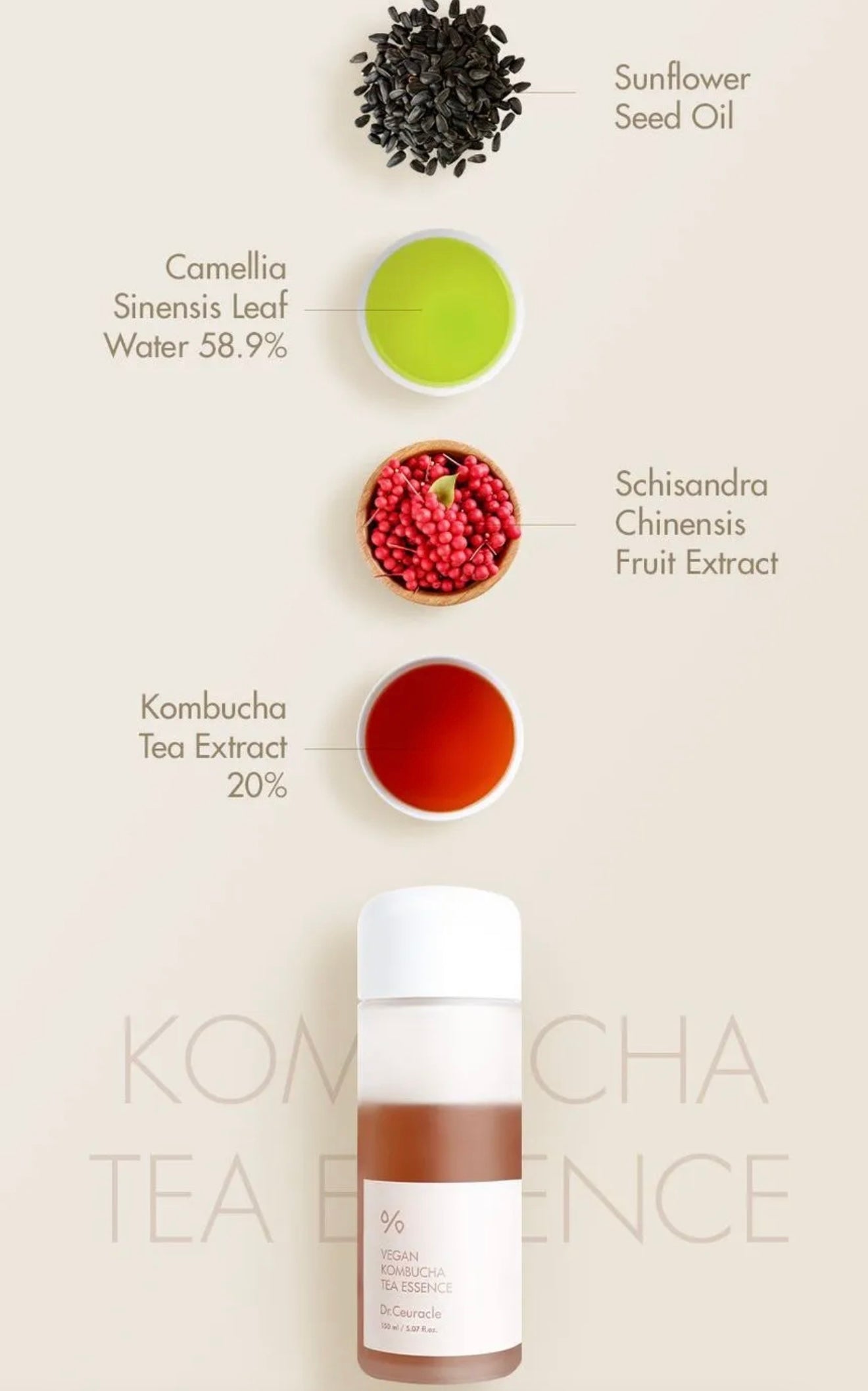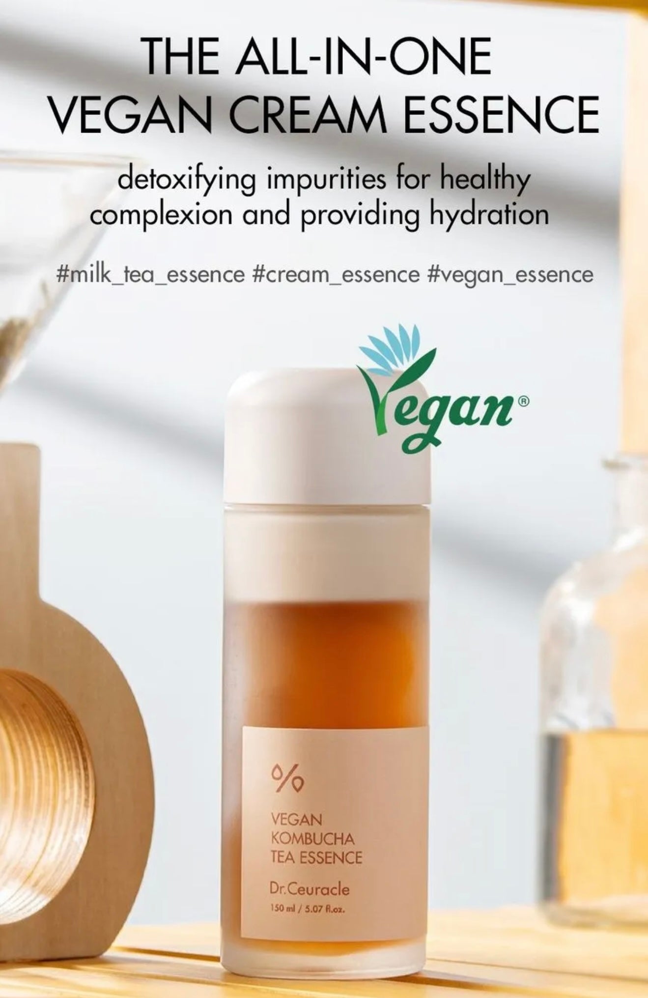 - Vegan Kombucha Tea Essence (150ml): A milky, nutrient-dense essence that deeply hydrates and detoxifies.