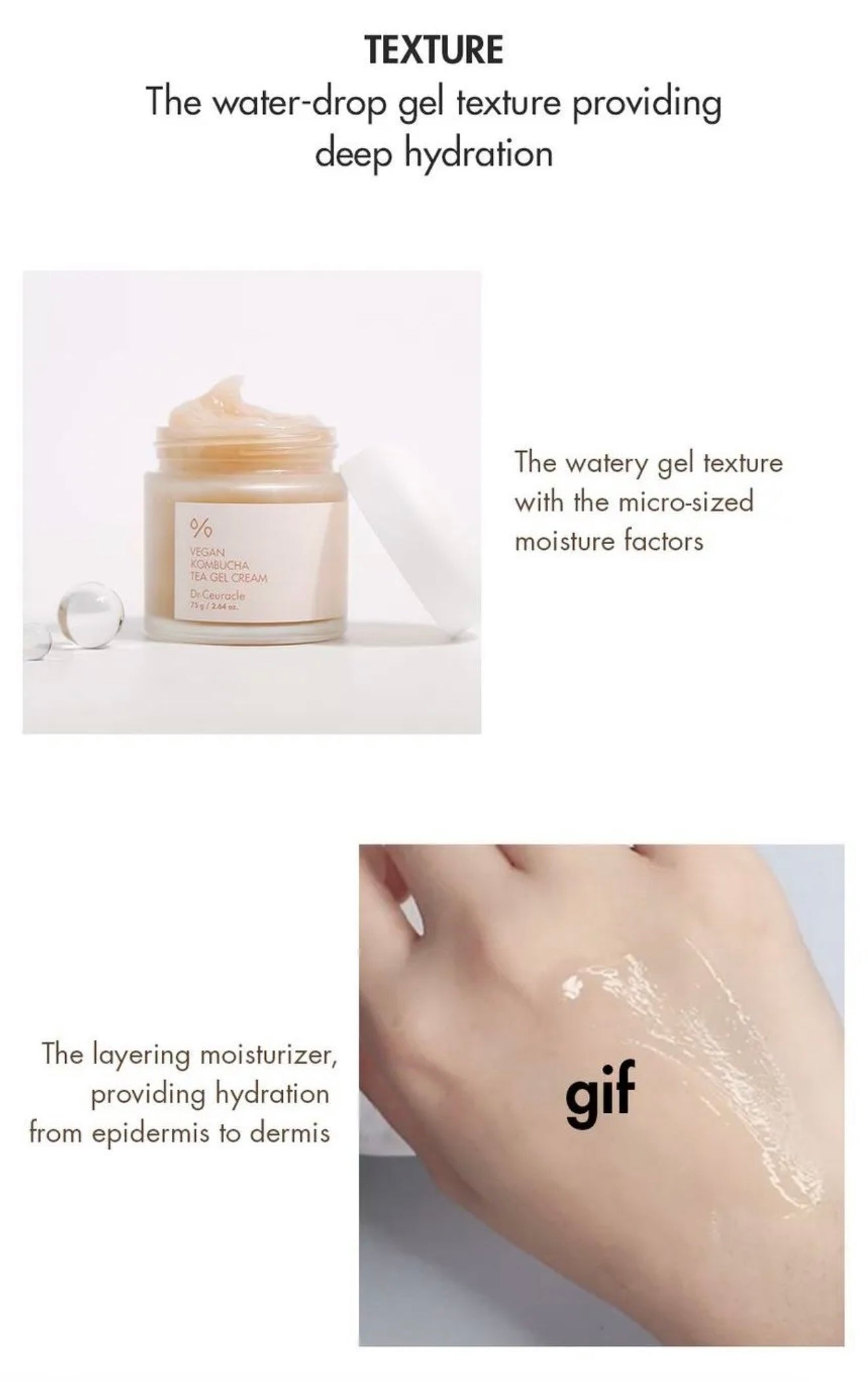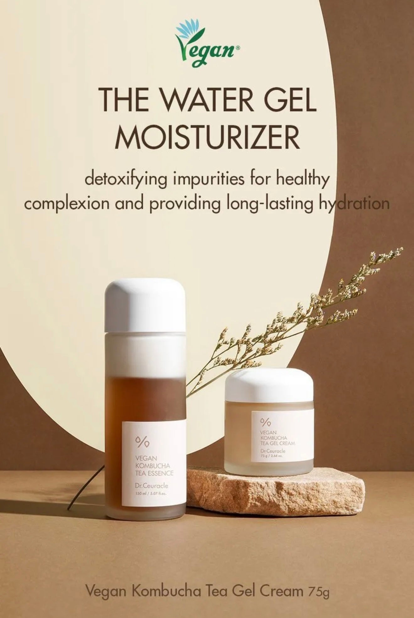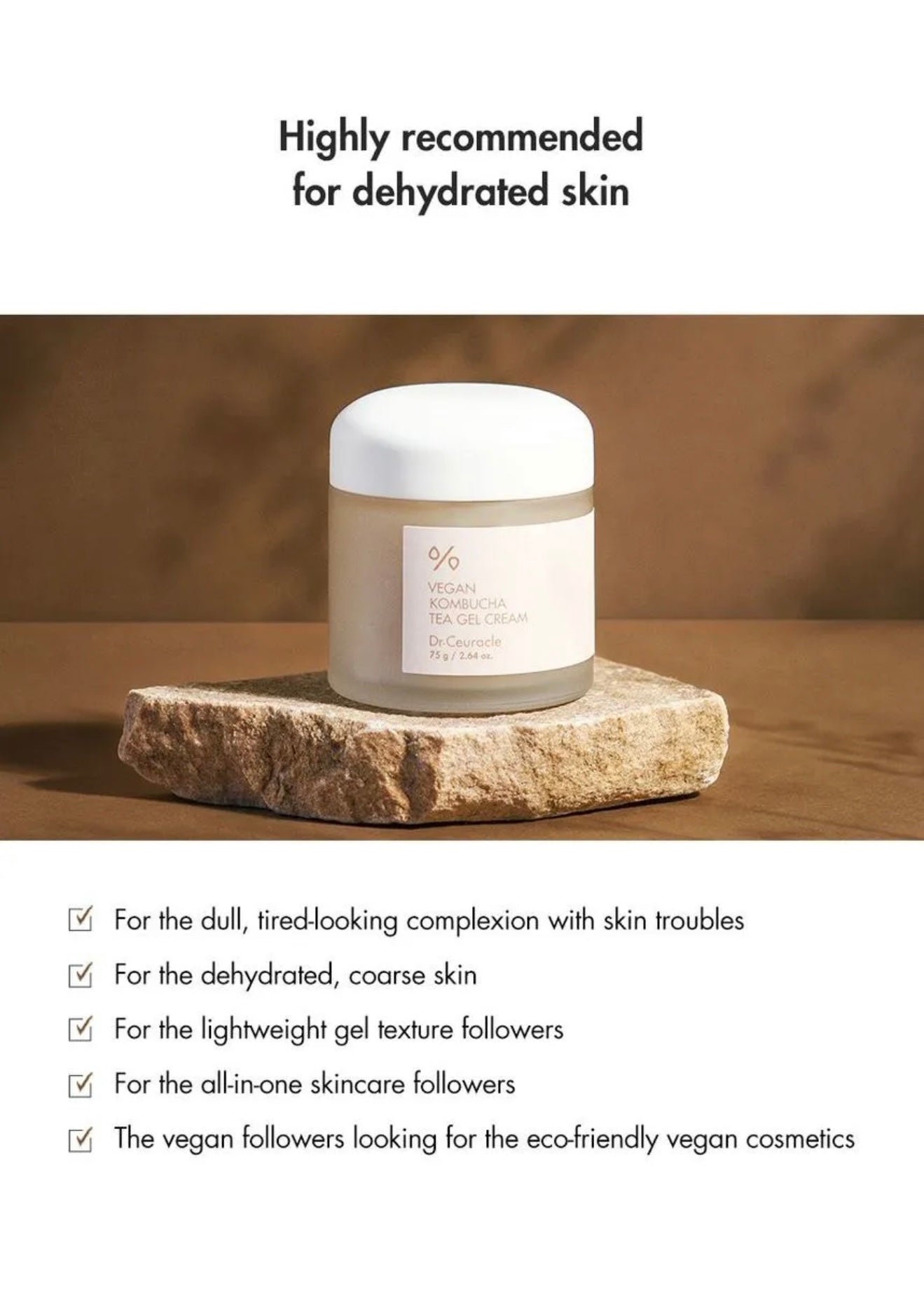 - Vegan Kombucha Tea Gel Cream (75g): A lightweight gel cream that locks in moisture while calming irritation and boosting