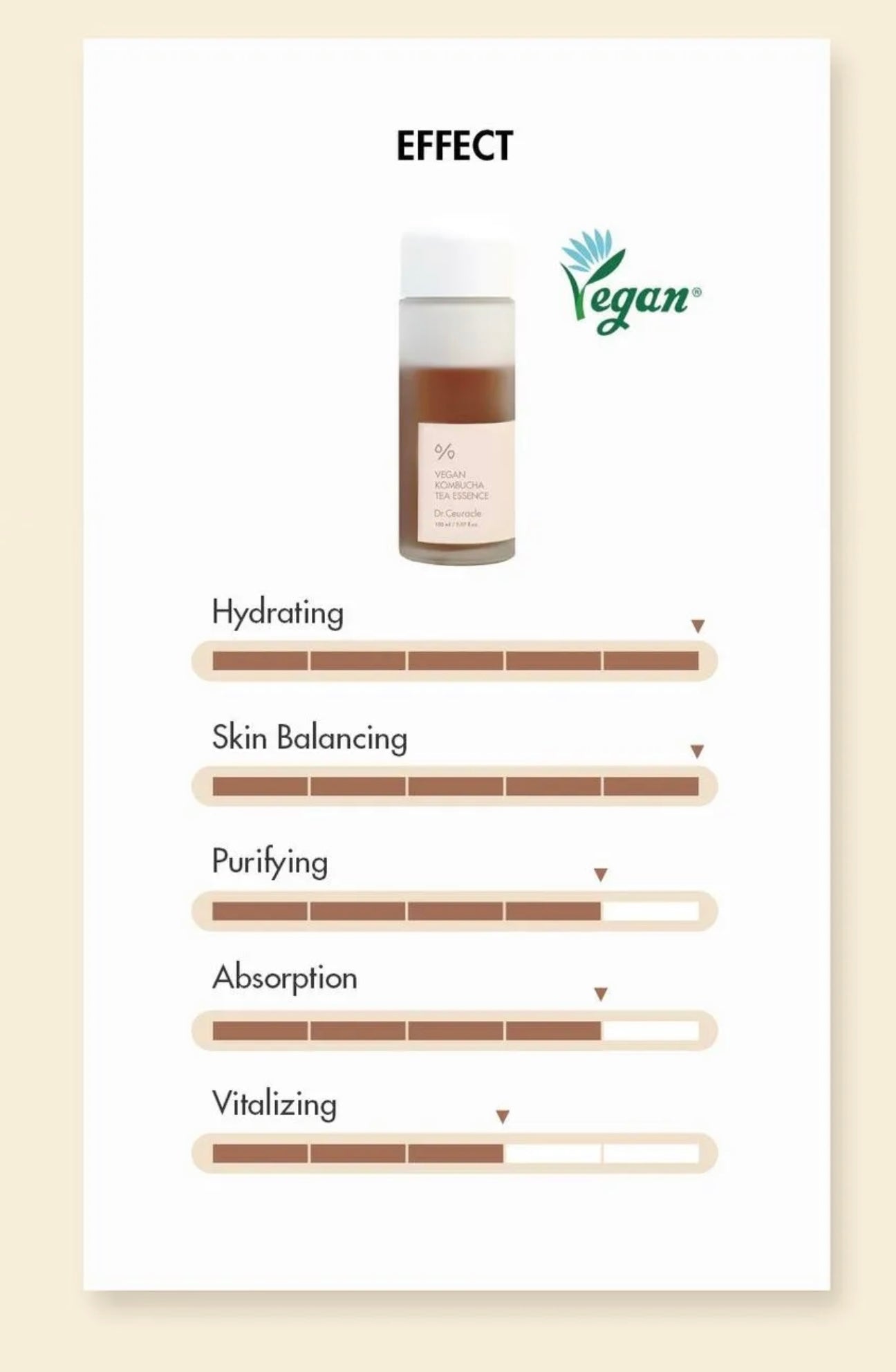 Vegan Kombucha Tea Essence: Shake well and apply a proper amount over cleansed face. Pat gently to aid absorption.