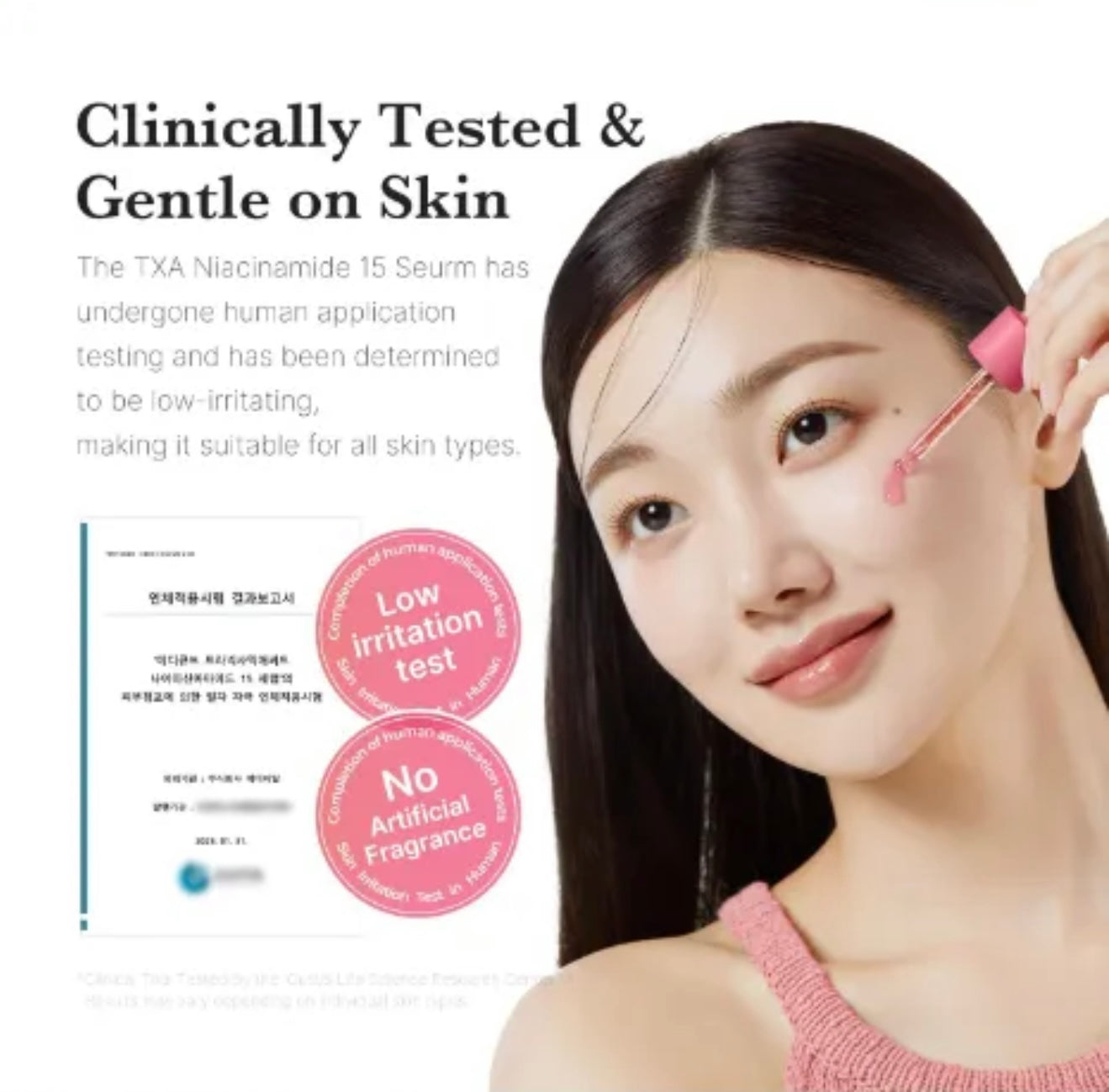 - TXA helps maintain overall skin balance, including caring for uneven skin tone; Niacinamide enhances complexion and skin texture, and Albutin helps minimize the look of uneven patches and enhances skin clarity.