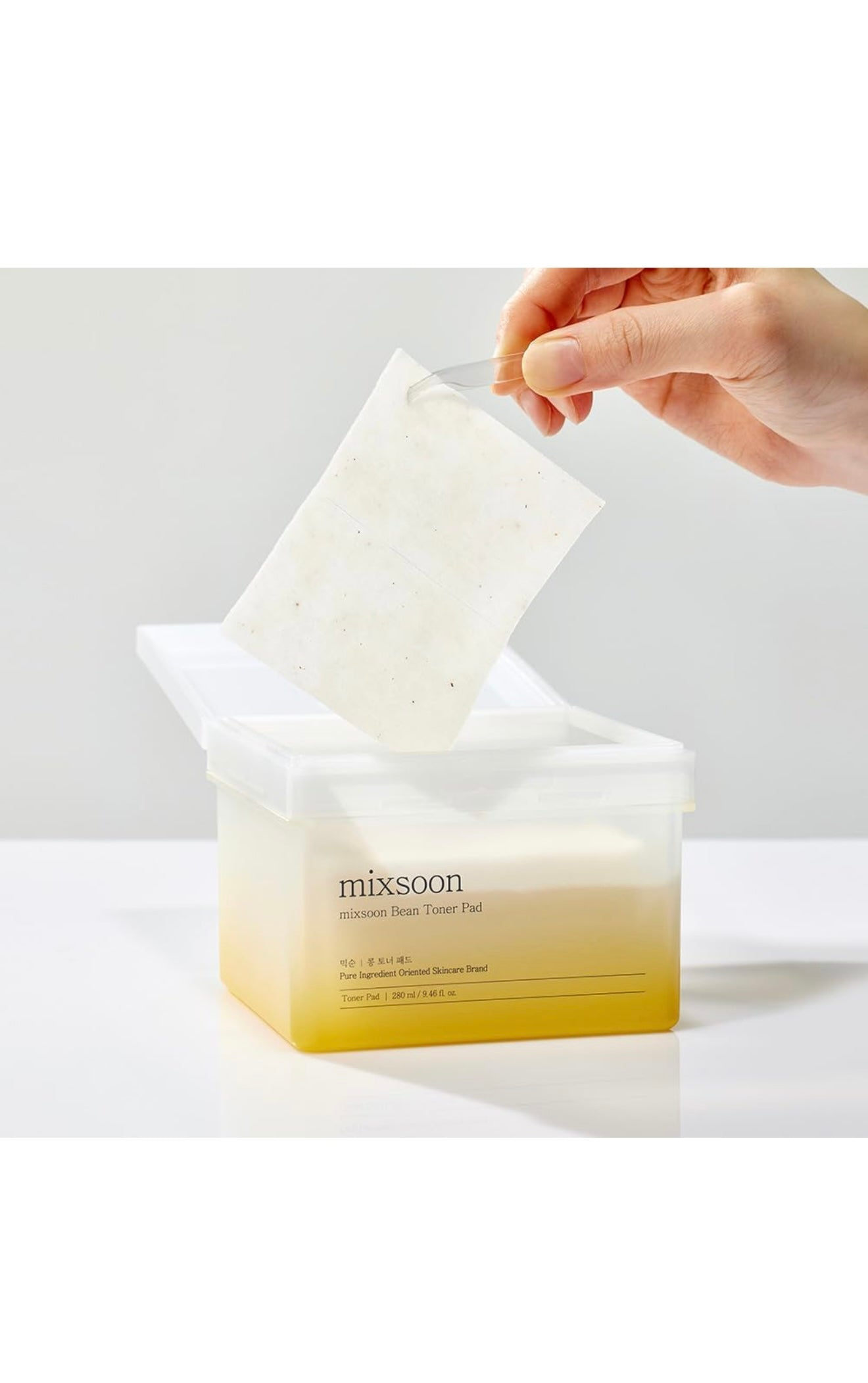 The Mixsoon Bean Toner Pad is a moisturizing and nourishing toner pad made with protein-rich bean extract that deeply hydrates and nourishes the skin. Each box contains 70 pad sheets filled with a bottle of nourishing essence, which can be split into 140 sheets for more targeted use. The pads are made with natural cotton pulp material, embedded with cotton seed particles for gentle yet effective exfoliation.