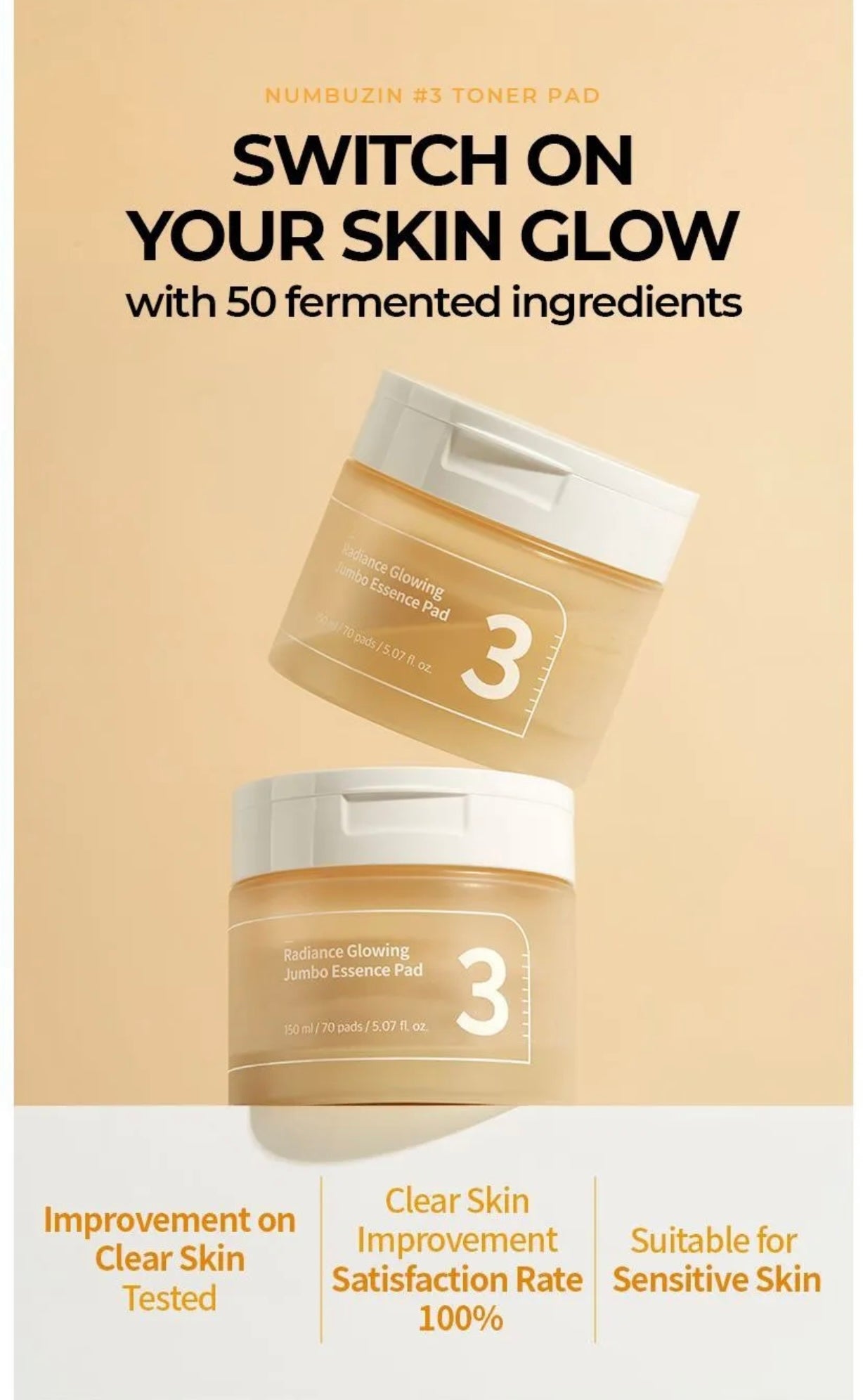 Numbuzin No.3 Radiance Glowing Jumbo Essence Pad (70 pads)