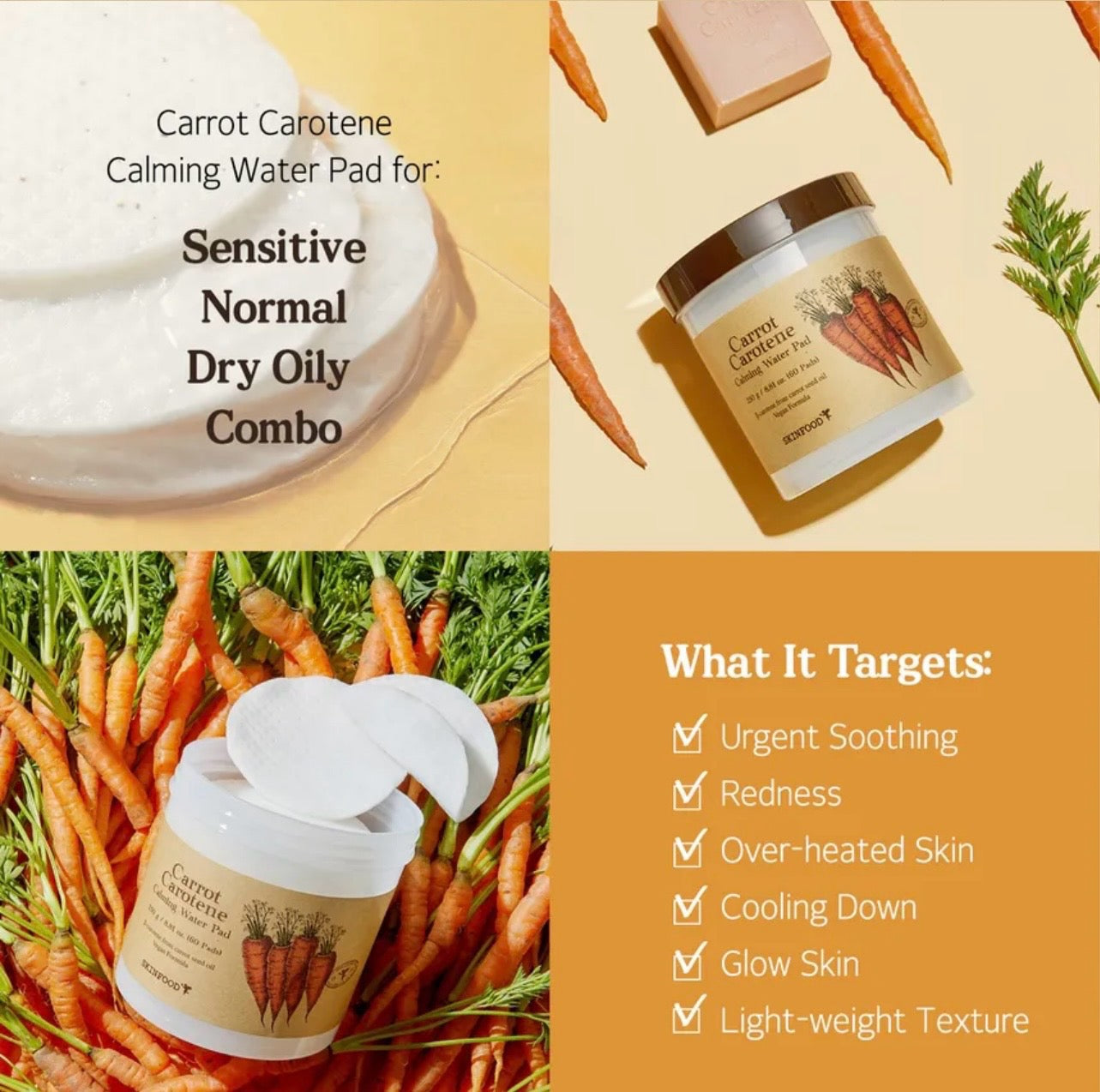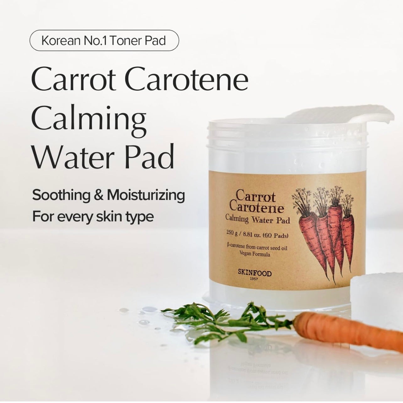 Transform your skin with SKINFOOD's Carrot Carotene Calming Water Pad. These vegan pads contain nourishing β-carotene extracted using a gentle steaming process, providing essential nutrients to relieve redness and soothe sensitive skin. Dermatologically tested and infused with moisturizing ingredients, they help restore your skin's natural barrier for a healthy, glowing complexion.