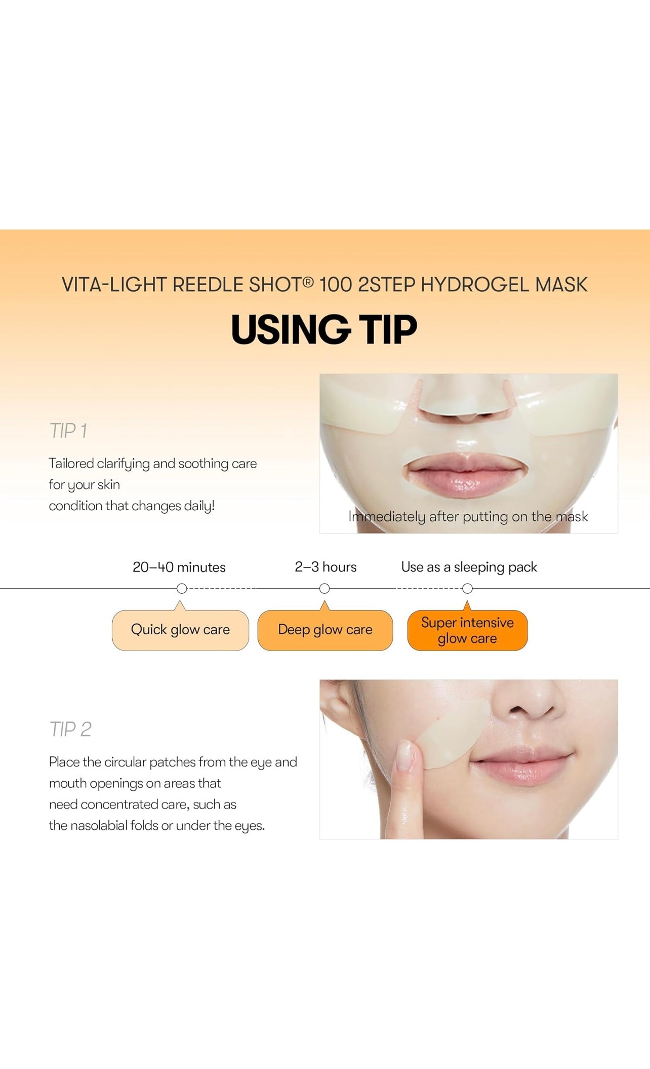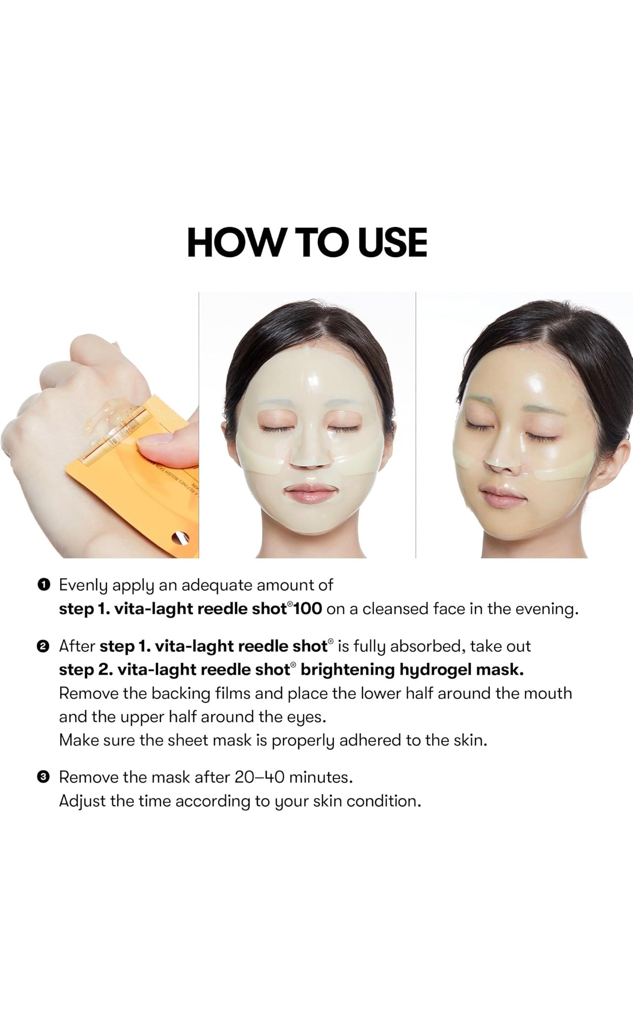 - This 2-step mask with Vita-Light Reedle Shot formula helps moisturize and even out the skin tone.
